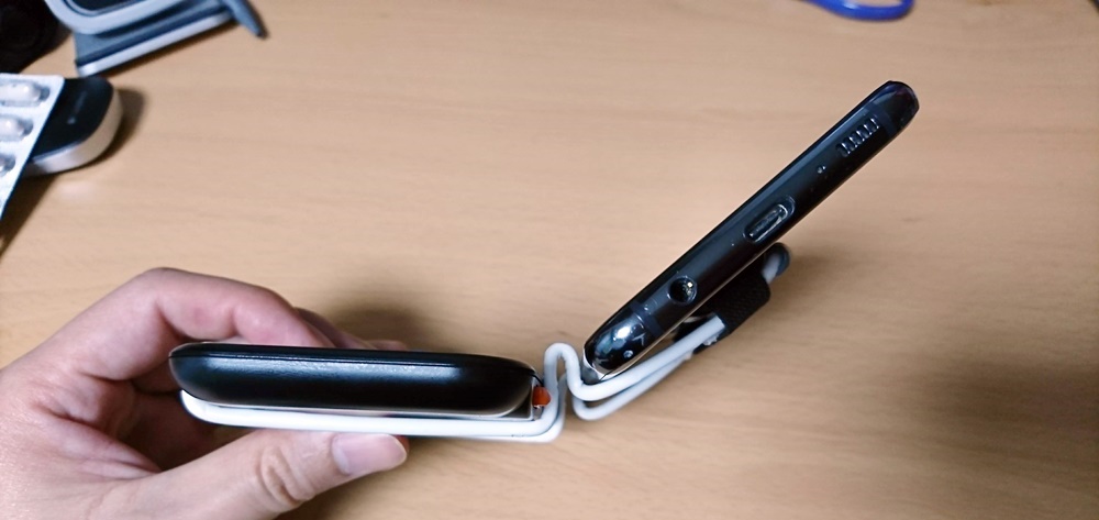 소햏의 스마트폰 뒷면에는 자유낙하 방지를 위한 고리가 붙어 있으므로, 이처럼 간단한 결합이 가능하다오.