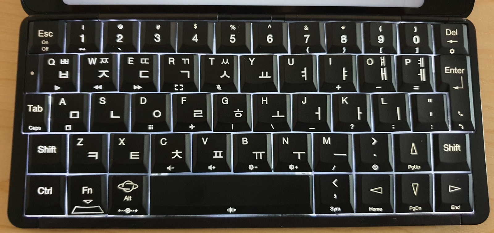 키보드에는 무려 한글 각인이 되어 있으며, 나름 백라이트도 켤 수 있소.