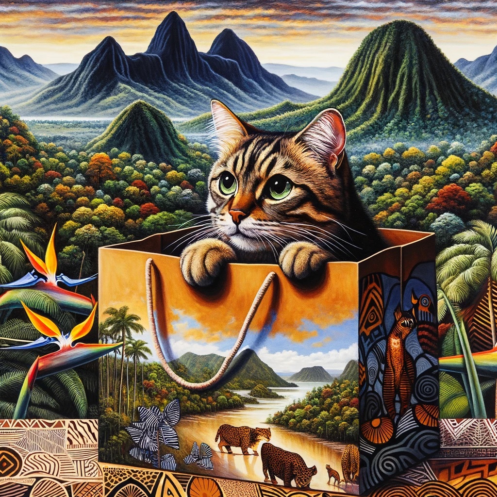 2024.01.08 - 쇼핑백에 들어간 고양이 사진을 다양한 화풍으로(2)